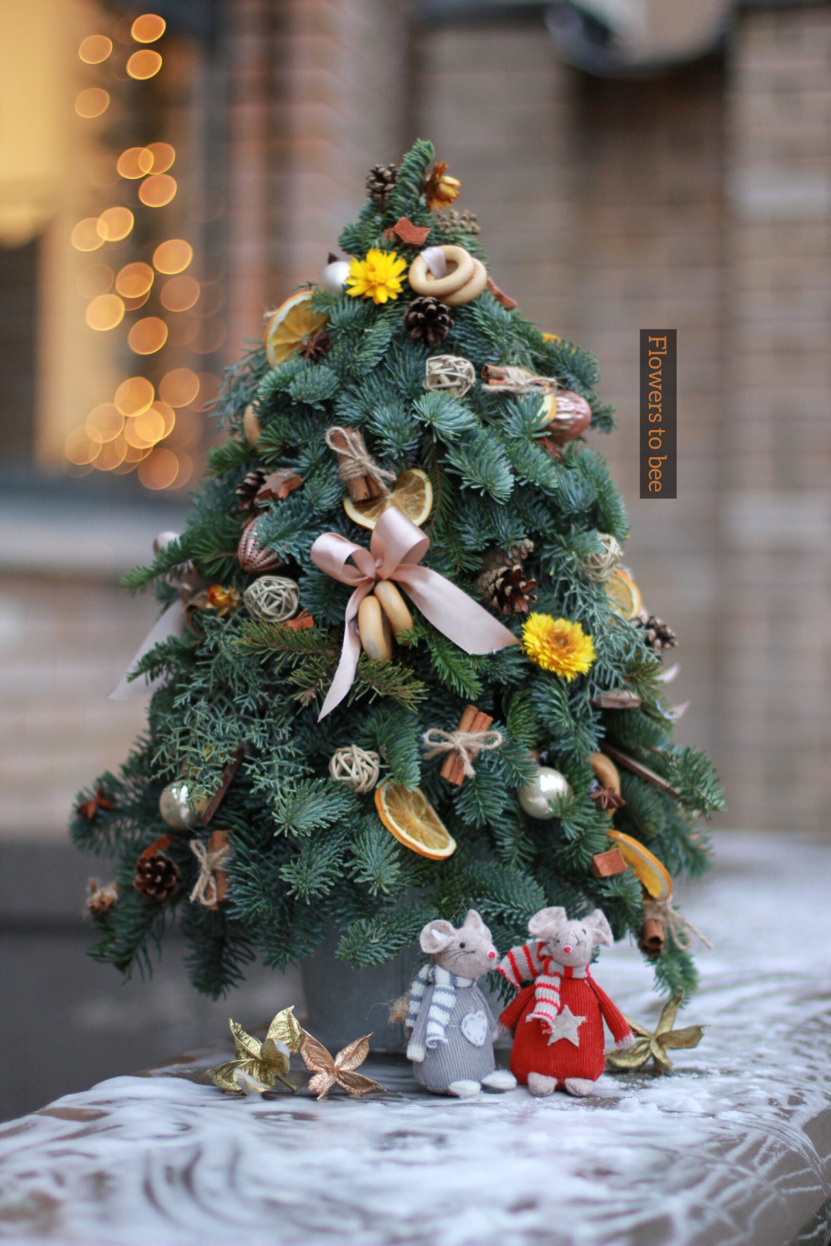 Ароматная ёлочка из живой датской ели нобилис. Натуральные элементы декора, игрушки, корица.